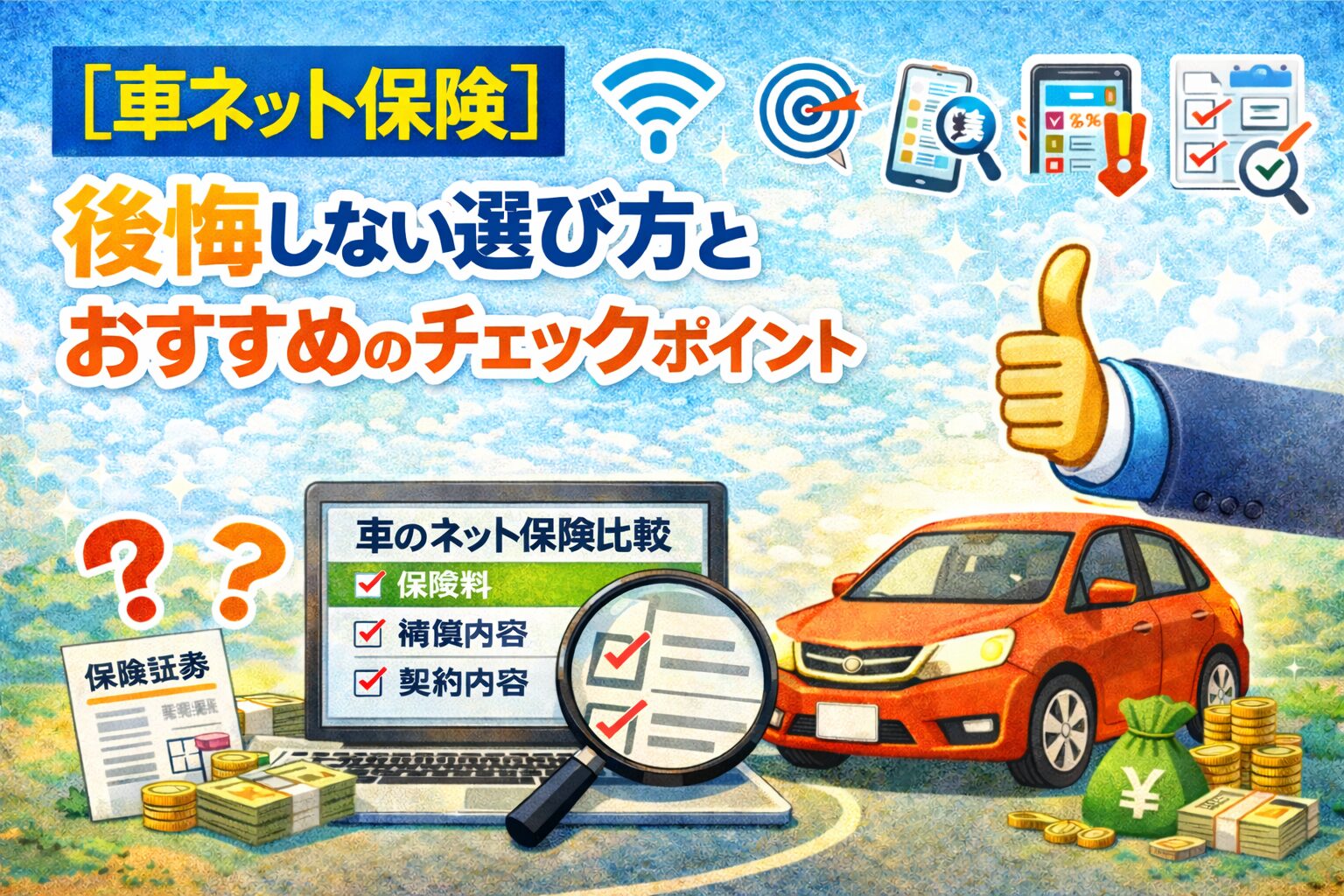 車のネット保険は、選び方さえ間違えなければ保険料の節約につながりやすい一方、補償内容を理解しないまま切り替えると後悔しやすい分野です。